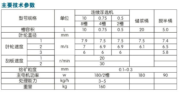 Continuous flotation machine is self suction mechanical agitation flotation machine, it is not need or need a small amount of auxiliary equipment, equipment configuration and convenient adjustable, completed non-ferrous metals, ferrous metals and non-metallic mineral processing experiment.
